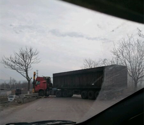 据市民爆料,今天上午途经张庄中桥时发现限高杆被大车撞倒。肇事大车横跨在马路上,阻塞了交通。事故一度导致附近路段拥堵,车辆难行。