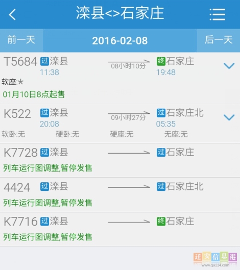 迁安信息港消息(编辑:李娜)随着春节临近,火车票也日渐紧俏起来,但是家住迁安市的林女士却发现,无法从中国铁路客户服务中心12306手机客户端上预订从滦县到石家庄的火车票。她发给小编这样一张图,并称“让我如何回家”?