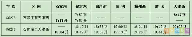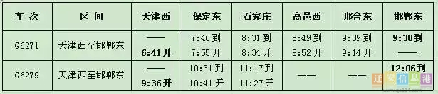 据了解,津保铁路明日正式开通运营,并即将发售津保高铁列车车票。2015年12月28日至2016年1月9日开行旅客列车4.5对。其中:石家庄-天津西2列、天津西-邯郸东2列、邯郸东-秦皇岛1对、邯郸东-石家庄1列、邯郸东-唐山1列、唐山-石家庄1列。