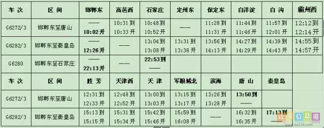 邯郸东-唐山/邯郸东-石家庄/邯郸东-秦皇岛