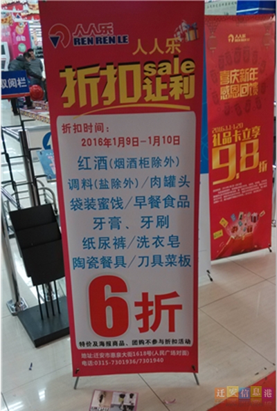 迁安信息港消息(编辑:李贺娟)今日上午,有市民向我们反映,“人人乐商品六折,有些货架都空了,这是不是说人人乐真要撤走了呀?”为此,小编走访了人人乐超市。