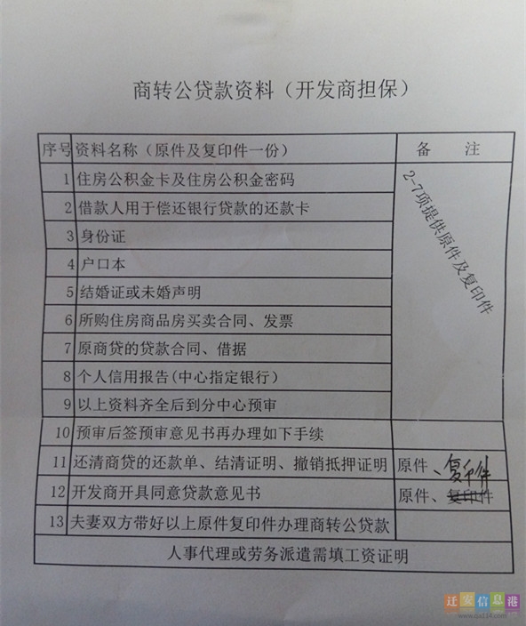 据该热心市民反映,她曾拨打过迁安住房管理中心的电话,询问如何办理“商转公”贷款,工作人员称需要到迁安住房管理中心领一张明细表,“我是上班族,周六日才能休息,如果要拿个表格,还得请假去,确实不方便”。为了方便上班族了解“商转公”的相关政策,小编来到迁安住房管理中心,工作人员在了解了相关情况之后,递给小编一张明细表,称“按照这个表格准备资料”。