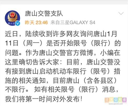 迁安信息港消息(编辑:陈雪娇)近日,有很多市民向迁安信息港询问,1月11号开始迁安是否又要开始限行了?就目前的确切信息来看迁安没有限行计划!