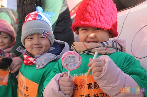 许多市民看到小朋友的举动,纷纷表示非常惭愧。这些小朋友冒着严寒用实际行动、用爱心告诉大家要远离烟草,珍爱生命。