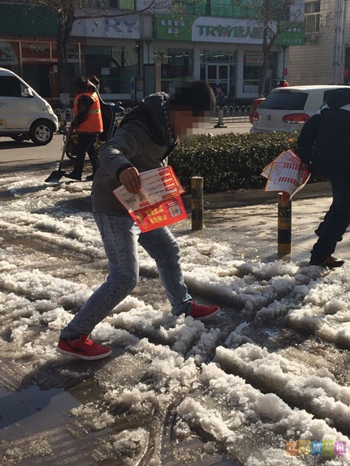 早晨9点多小编到达该街口时,道路上的冰水混合物还未被处理,顺着水流我们来到了一家住户的房子前,隔着厚厚的铁皮门,小编能清晰的听见流水声。