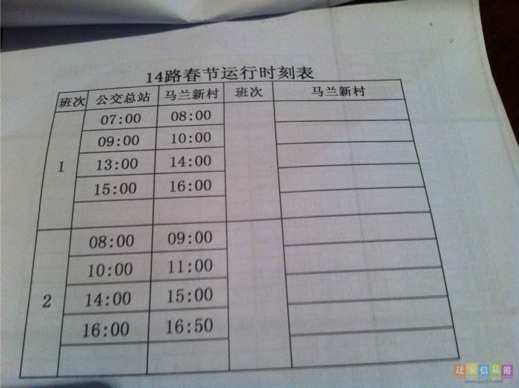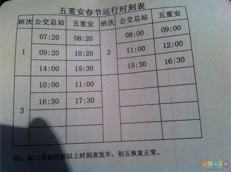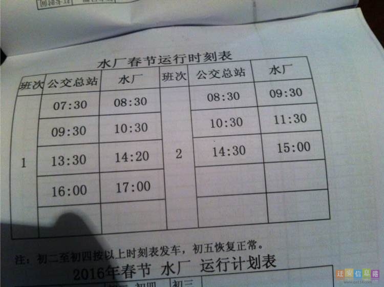 小编从迁运公交公司了解到,除夕当天下午及初一外线(城乡)公交车暂停运行,初二至初四采用春运期间公交运行时刻表(见下图所示);除夕下午内线(市区)公交车暂停运行半天,初一至初四公交车班次减少,初五迁运公交公司正式上班,公交运行情况恢复正常。市民在春节期间如有乘公交车需求,可参照以下春节期间公交运行时刻表,或直接拨打电话8626868(城乡)和8626102(市区)进行咨询。