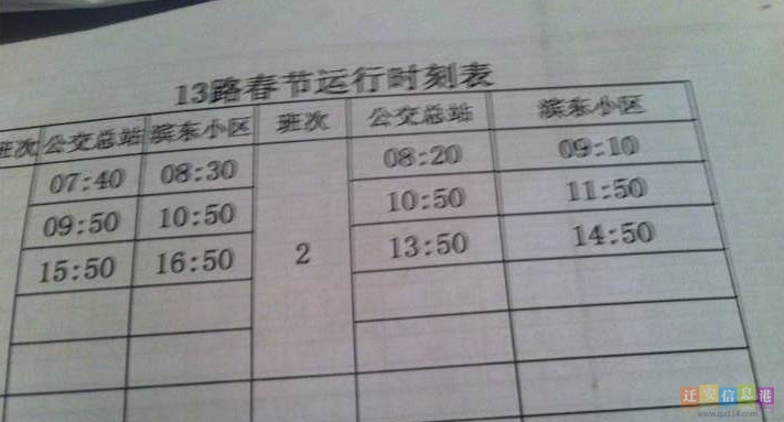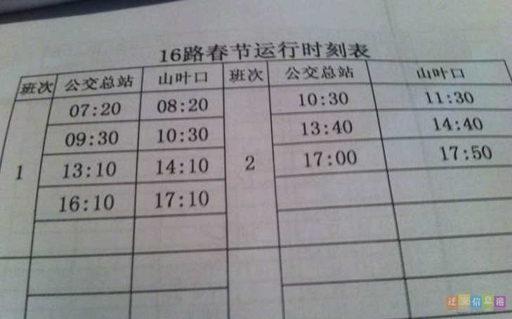 小编从迁运公交车某位司机朋友那里获得这份公交时刻表,供市民参考。