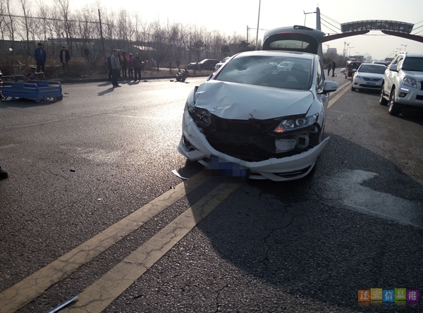 钢城路任官营小学门口发生严重车祸,三轮车与轿车相撞