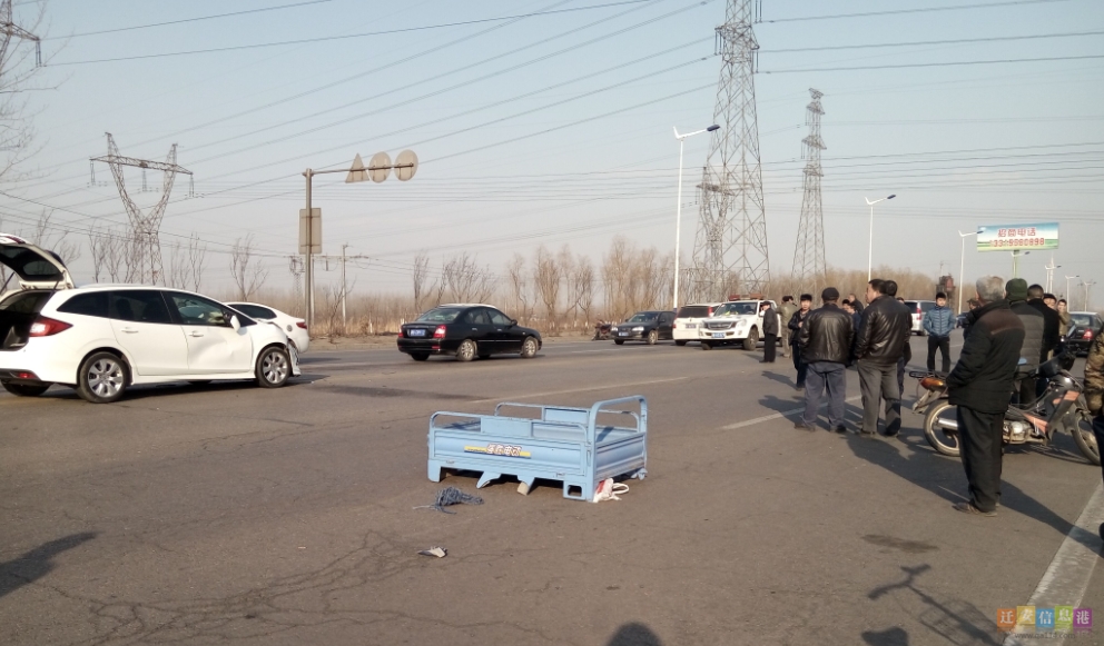 迁安信息港消息(编辑:李娜)今日下午3点半许,在钢城路任官营小学路口发生严重车祸,一辆接送孩子上下学的三轮车与一辆白色小轿车发生碰撞,被撞出30余米远,致使三轮车车主伤势严重,已送往医院救治,生死未卜。