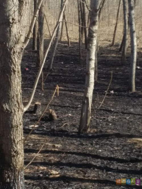迁安信息港消息(编辑:李贺娟)今日上午,任官营村民任凤国向本平台打来电话称,昨天,自家的树林被烧,上千棵树木受损。据任凤国推测,这次的火灾,可能是有人故意放火所致。