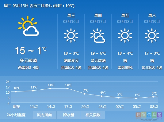 据河北省迁安市气象部门报道,今日气温3——14℃,16日为6——19℃,本周气温逐日回升。虽然温度逐日回暖,但还是要提醒广大市民朋友,停暖之后,室内温度较没停暖前有所降低,可采取空调、电暖气等采暖工具度过这段过渡期。
