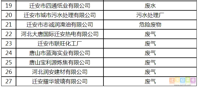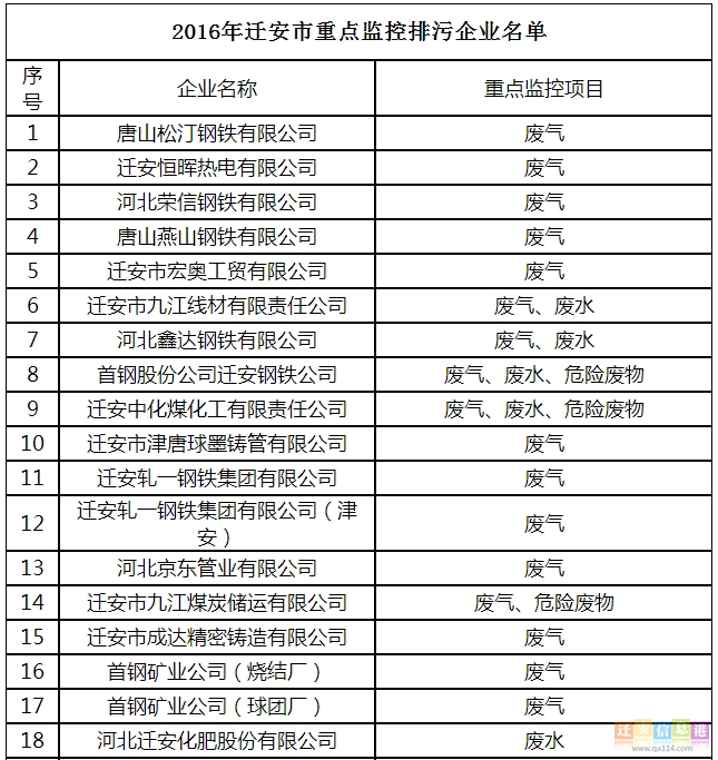 2016年迁安市重点监控排污企业名单!27家企业榜上有名!