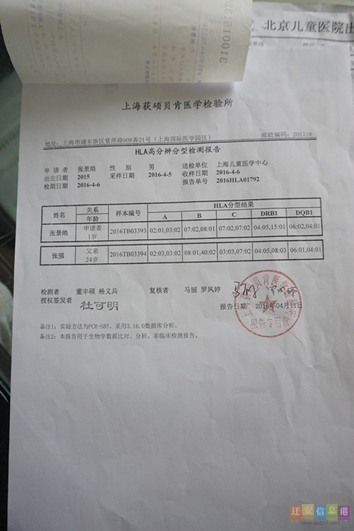 小景皓与他的爸爸做骨髓配型结果