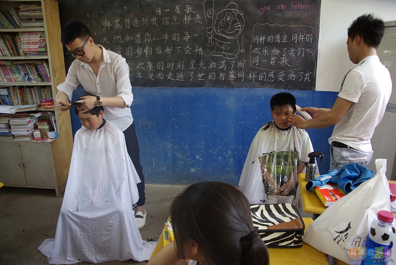 除此之外,来自天洋广场形象革命的两位爱心理发师义务为孩子们理发,支教大学生为孩子们洗头,这浓情的一幕,再也不需要太多的语言。