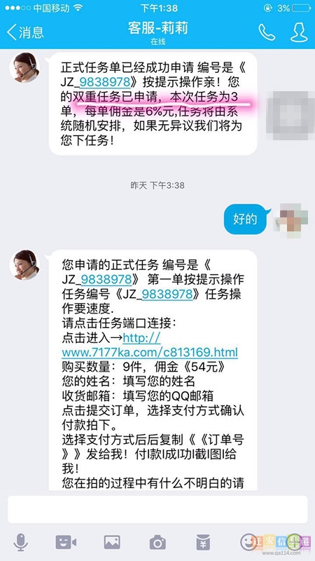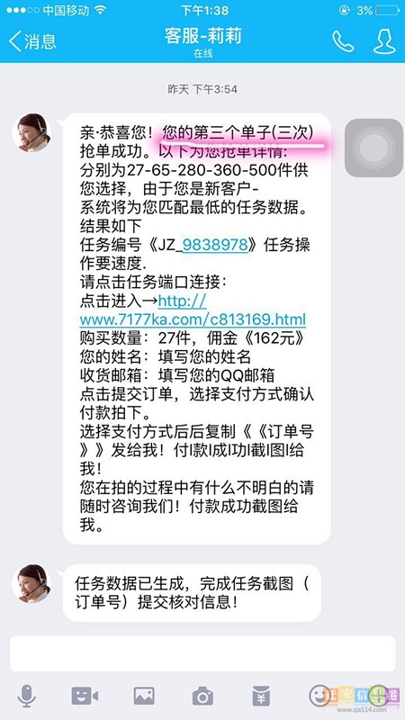 据了解,目前“兼职淘宝刷单”的信息犹如病毒一般被快速复制,迅速传播,多位市民曾向小编反映,QQ里经常被“兼职淘宝刷单”的信息所困扰。对此,多数人保持理智,然而仍有像小丽(化名)这样的全职妈妈被骗的血本无归。