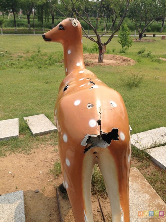近日,热心市民向本平台爆料称,他在三里河新寨村河段附近散步时发现,草坪上小鹿雕塑遭到了严重破坏,三只小鹿的耳朵、犄角,尾巴消失,背部也惨遭破坏,原本活泼可爱的小鹿雕塑变成了“身残志坚”的可怜模样,让人心痛,“附近的居民跟我说,河畔人家附近小广场处的袋鼠和骏马像也遭到了破坏,”这位热心市民无奈道“如果雕塑有眼泪,它们也要哭了,不要让小鹿们再哭泣”!