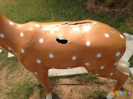 迁安信息港消息(编辑:李贺娟)三里河新寨村河段附近的草坪上,有一组城市雕塑,这组雕塑刻画了三种小鹿玩耍于草坪上的和谐美好画面,但是,原本扮靓城市的雕塑却遭到不同程度的损坏,让人倍感心痛。