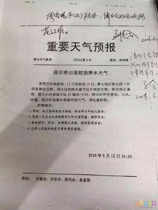 6月13日12点30分,唐山市气象局发布雷电黄色预警信号:据目前资料分析,我市部分地区已有较强降雨回波并有雷电活动,预计今天下午到夜间我市大部分地区将有雷电活动,雷电时可能伴有冰雹、短时大风、短历时强降水等强对流天气,请注意防范。