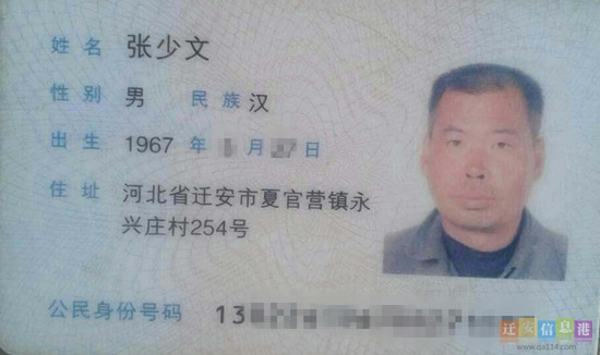 迁安信息港消息(编辑:李贺娟)今日上午,本平台收到市民张女士的求助,称其患有精神疾病的叔叔张少文于十几日前走失,至今未归,家人十分着急。