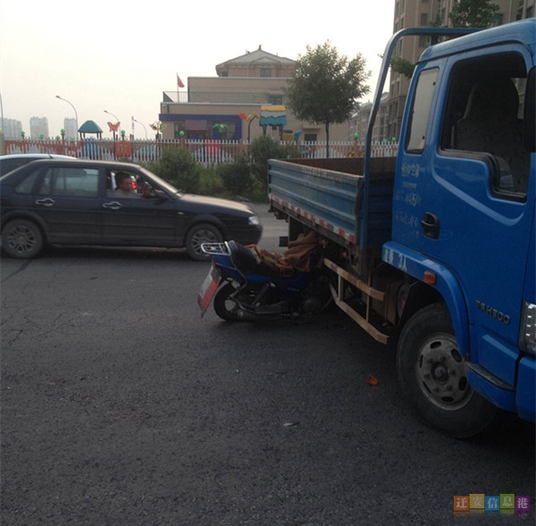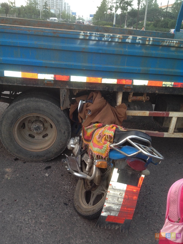 热电厂门口发生车祸:摩托车钻进货车车底,伤者满脸鲜血