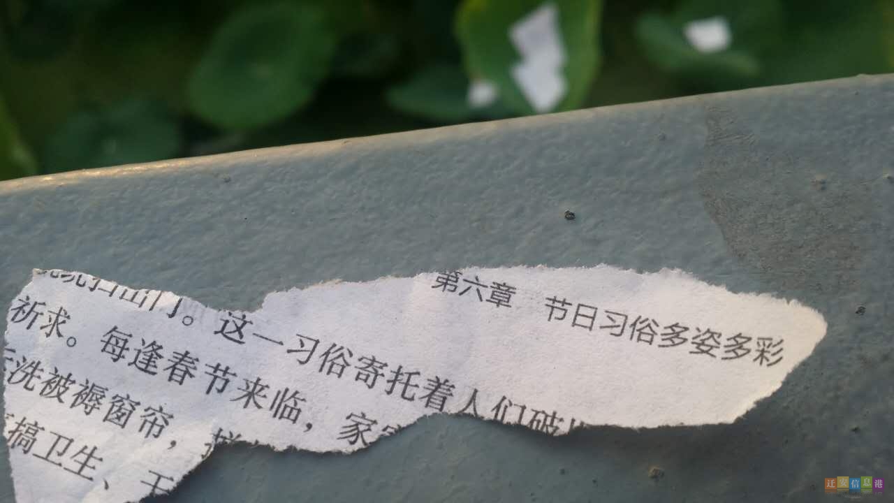张女士讲述,这些碎纸片也不知道是谁扔的,但是从地上捡到的纸片内容来看,这一池的碎纸竟是被撕得粉碎的学生课本!据市民反映,因在学校附近,这里也成了孩子们嬉戏玩耍的天堂,然而,却有些孩子将课本撕碎了扔在荷塘里。