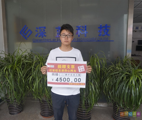 5月5日,迁安信息港倪小明亲手将首笔爱心善款交给张强