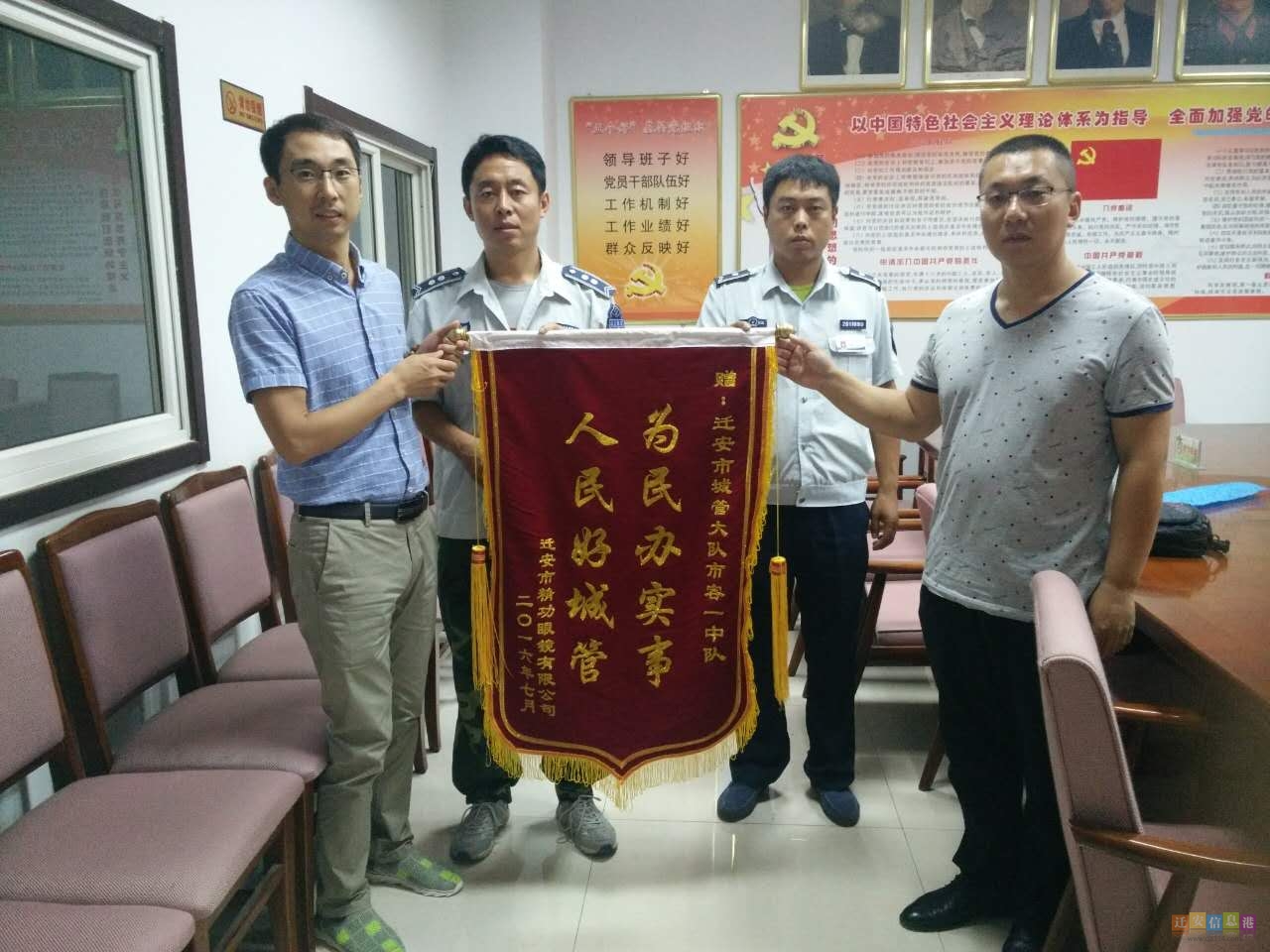 迁安信息港消息:7月14日,迁安市精功眼镜有限公司代表将一面绣有“为民办实事,人民好城管”的锦旗和一封感谢信送到城管大队表示感谢,这究竟是怎么一回事呢?