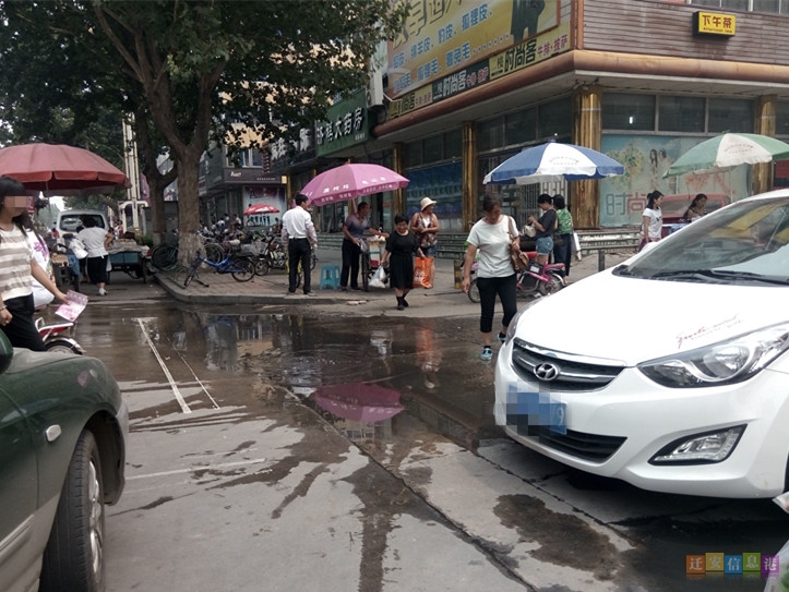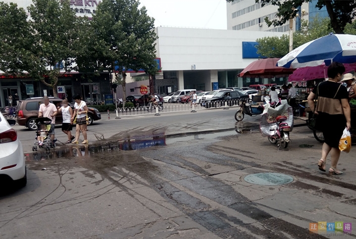 接到市民爆料之后,小编立即赶到燕山大路购物中心附近,在正对着中国银行的街口处,小编看到了市民所说的臭水区域,臭水已经流满了整个街口,臭气熏天。为了避开臭水,商贩尽量往马路中间靠,市民从此处经过时,有的踮起脚尖,有的绕行,此处的污水也让附近的商户,很是闹心,“太臭了,这都快一周了,希望早点帮我们解决一下吧!”