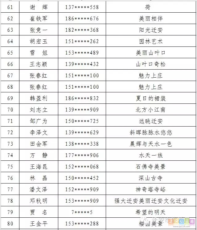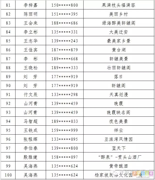 2016年7月20日至2016年8月10日网友通过迁安市旅游局微信公众平台对专家评选出的100幅作品进行大众微信投票,最终根据得票多少评选出一、二、三等奖。