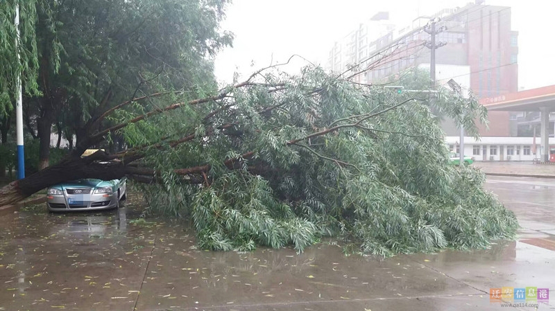迁安信息港消息:今日,有市民爆料称在祺光大街与丰乐大路交叉口附近的人行道上有一辆出租车被一棵大树砸中,所幸并无人员伤亡。