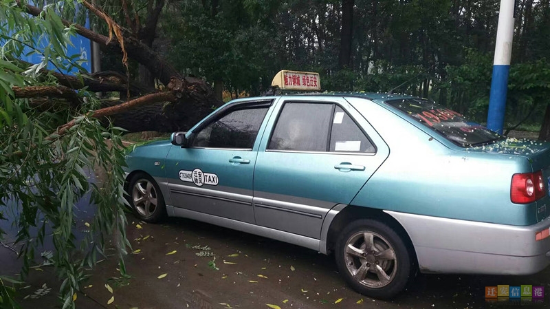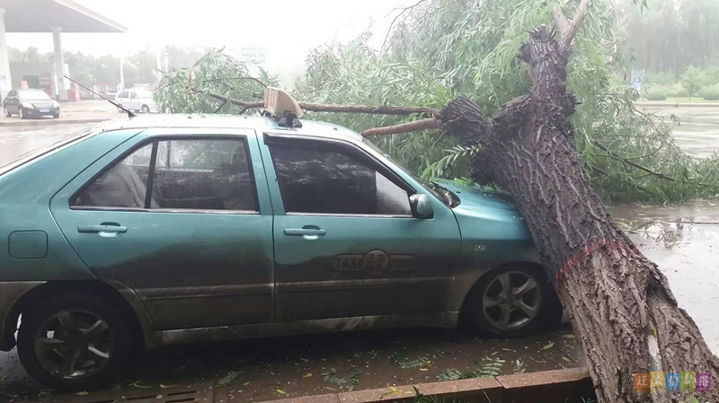 接到市民爆料之后,小编根据车牌号与该出租车司机取得联系,据了解,师傅姓吴,昨天下午5点钟左右,迁安正下暴雨,吴师傅在驾车行驶中,为了安全起见,将车辆停在人行道上接听电话,此时只听“砰”的一声巨响,一棵树正好砸在出租车的发动机盖上,惊魂未定的吴师傅下车后查看,发现出租车被一棵很粗的树砸中,大树无法移动,也无法判断车辆受损情况。