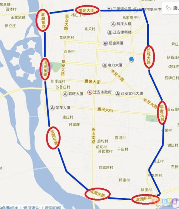 注:围成城区内部区域的三条路线(蓝色路段),也限行!