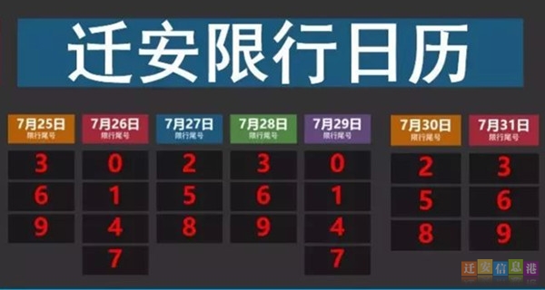 迁安信息港消息:前不久,本平台发布了迁安城区范围尾号轮换限行措施,但一些市民对限行的真假和具体实施办法仍有疑问。在此,小编重申,7月25日至7月31日,迁安城区范围限行!针对市民关心的一些限行问题,小编进行了整理,望广大司机知晓。