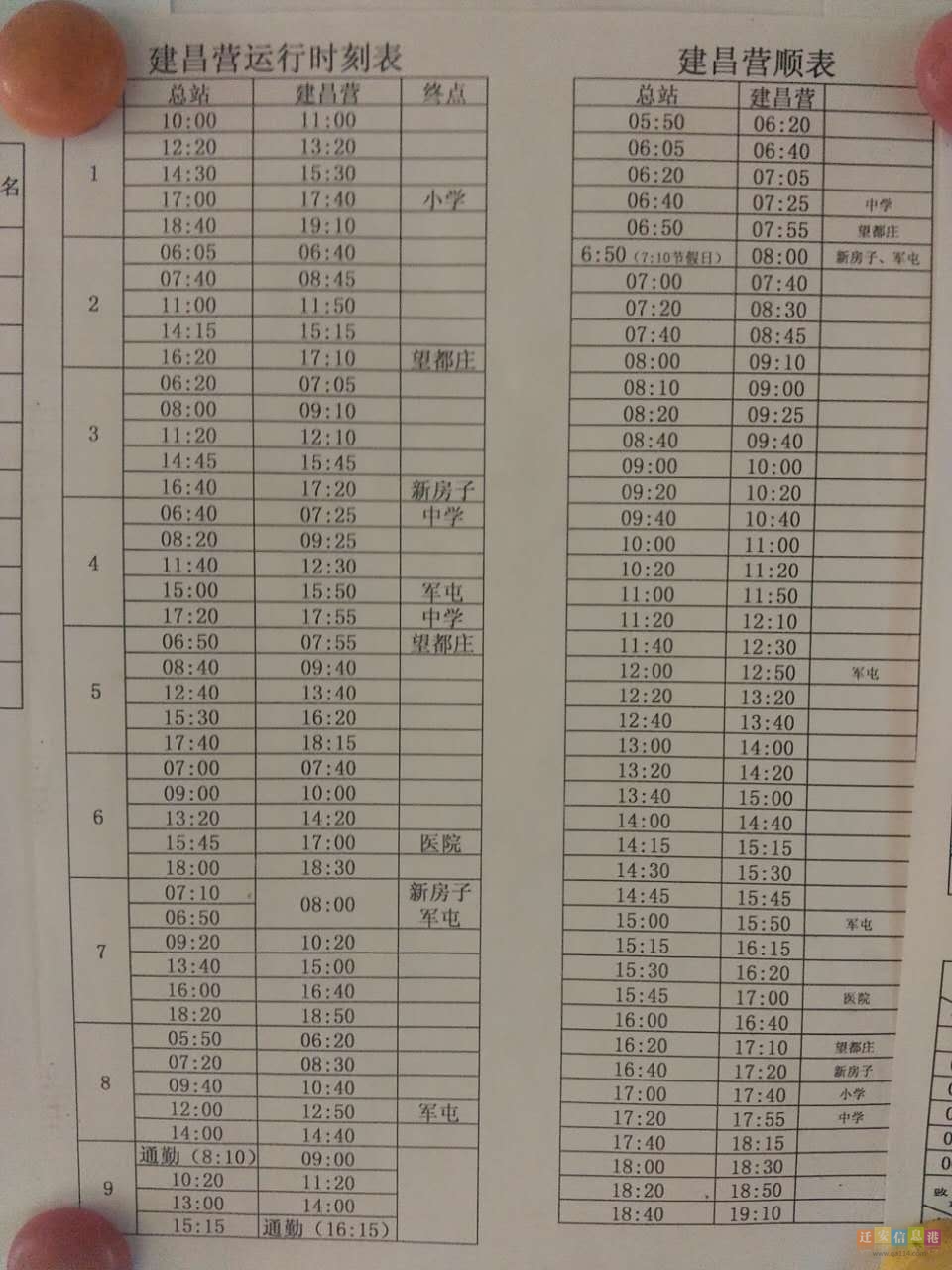 现将“公交总站——建昌营”公交线路原有运行时刻表公布如下: