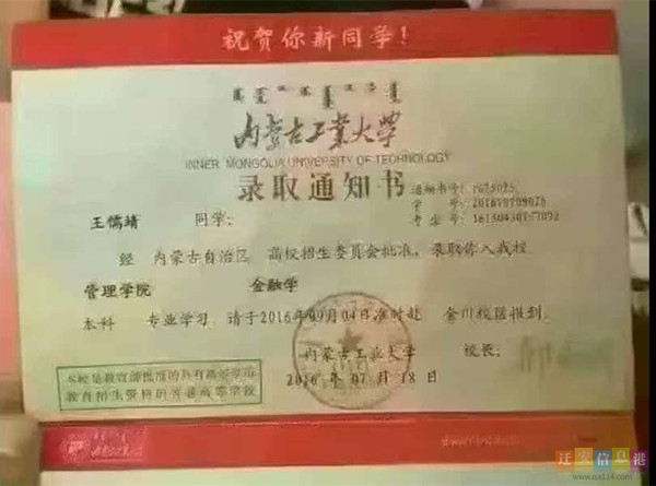 迁安信息港消息:大学开学在即,如果哪位学生在这个时候丢失了大学录取通知书,肯定十分着急。今日,小编在朋友圈和贴吧看到了一则消息称,有人捡到了王儒靖同学的大学录取通知书。
