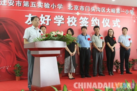 中国日报网河北频道唐山8月22日电 8月19日,唐山迁安第五实验小学与北京市大峪第一小学友好合作校签约仪式在迁安举行。