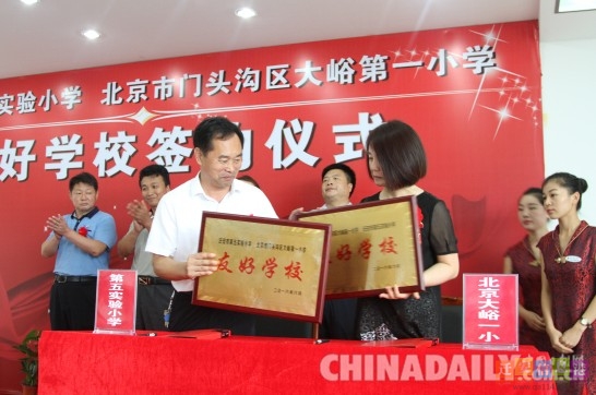 据了解,北京大峪一小是一所百年名校,“和则日新”的办学理念、内涵厚积的校园文化、科学前瞻的高效课堂、扎实全面的育人养成,是北京小学基础教育的先行人和佼佼者。在北京市门头沟区教委和迁安市教育局双方友好协商下,迁安五实小与北京大峪一小正式达成友好学校合作协议。双方将在学校文化理念、教师素质提升、教学课程改革等方面进行深度融合,充分利用、开发、共享两校的教育资源,实现优势互补,推动两校共同发展。在京津冀一体化协同发展的大背景下,迁安市第五实验小学积极抢抓机遇,努力融入到北京大教育圈平台中。迁安五实小与北京大峪一小就友好合作校的成功签约,标志着迁安五实小乃至迁安教育实现跨越式发展,向融入京津冀大教育圈迈出可喜的一步。