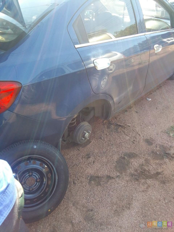 据高先生讲述,昨天晚上上夜班时,像往常一样,他将车停在九江四号门停车场处,随后进入厂内上班。让他没有想到的是,今天早上下班去取车时,竟然发现爱车的右后面的轮胎不见了。在高先生提供的照片中我们看到,蓝色赛欧车的轮胎被人卸走,空空如也没有任何支撑。经过一夜劳累的高先生发现轮胎被盗后觉得既可气又可笑,“难道就是缺这车型的轮胎,然后把我的卸走了?”车胎被盗后,无奈的高先生只能找人换上备胎。