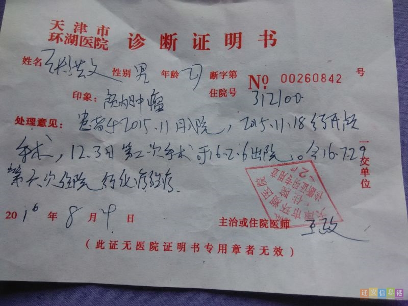 “2015年11月10日开始眼睛看不到东西,头痛,呕吐,14日就被确诊为嗅神经母细胞瘤(脑肿瘤)”,没有任何预兆,短短三天时间,由于肿瘤压迫视觉神经和嗅觉神经,张洪文的世界陷入黑暗,全家人也因此陷入了困境中。