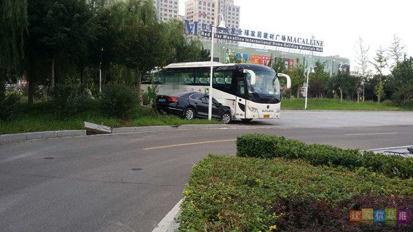 迁安信息港消息:今日上午,市民孙先生爆料称,一辆帕萨特小轿车跨过绿化地,直冲冲撞上某钢厂通勤车。孙先生希望广大司机引以为戒,注意行车安全。