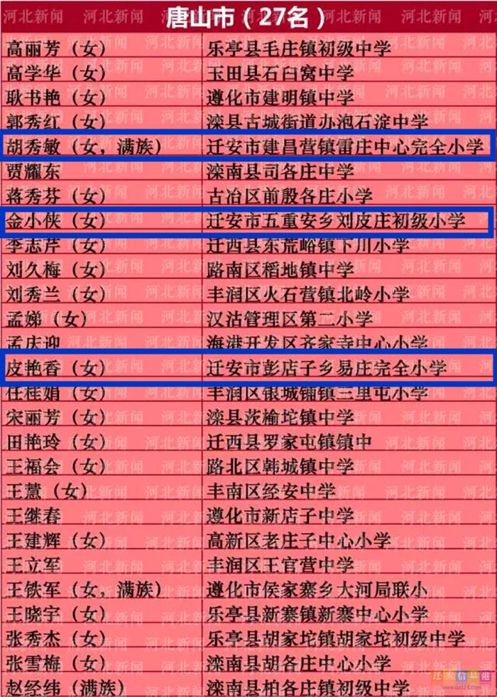 迁安信息港消息:近日,小编从相关渠道获悉,由省教育厅、省财政厅、省人力资源和社会保障厅共同组织的首届优秀乡村教师和优秀乡村教育工作者评选结果揭晓。其中,迁安三名教师入选河北省优秀乡村教师。