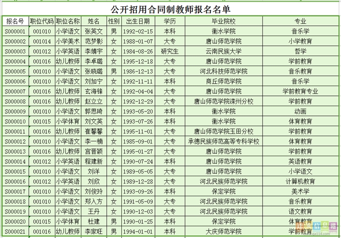 查看全部信息请点击原文链接,下载《公开招用合同制教师报名名单》查阅完整信息!
