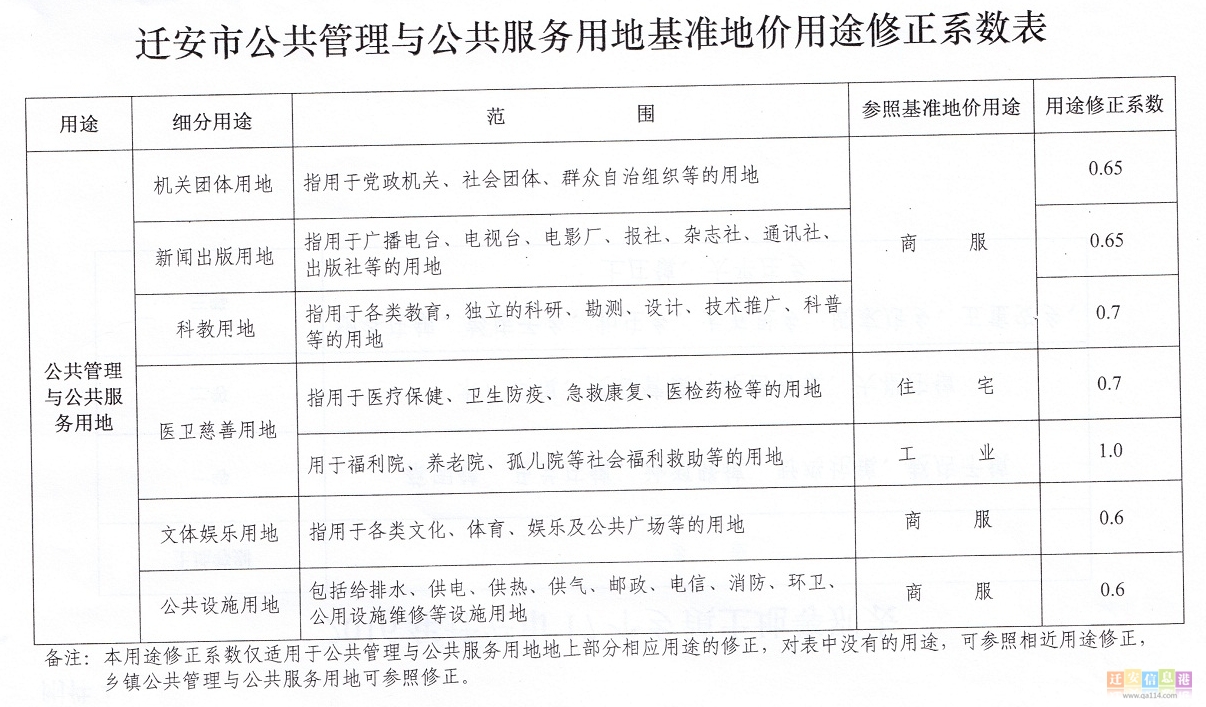 附件5.迁安市公共管理与公共服务用地基准地价用途修正系数表