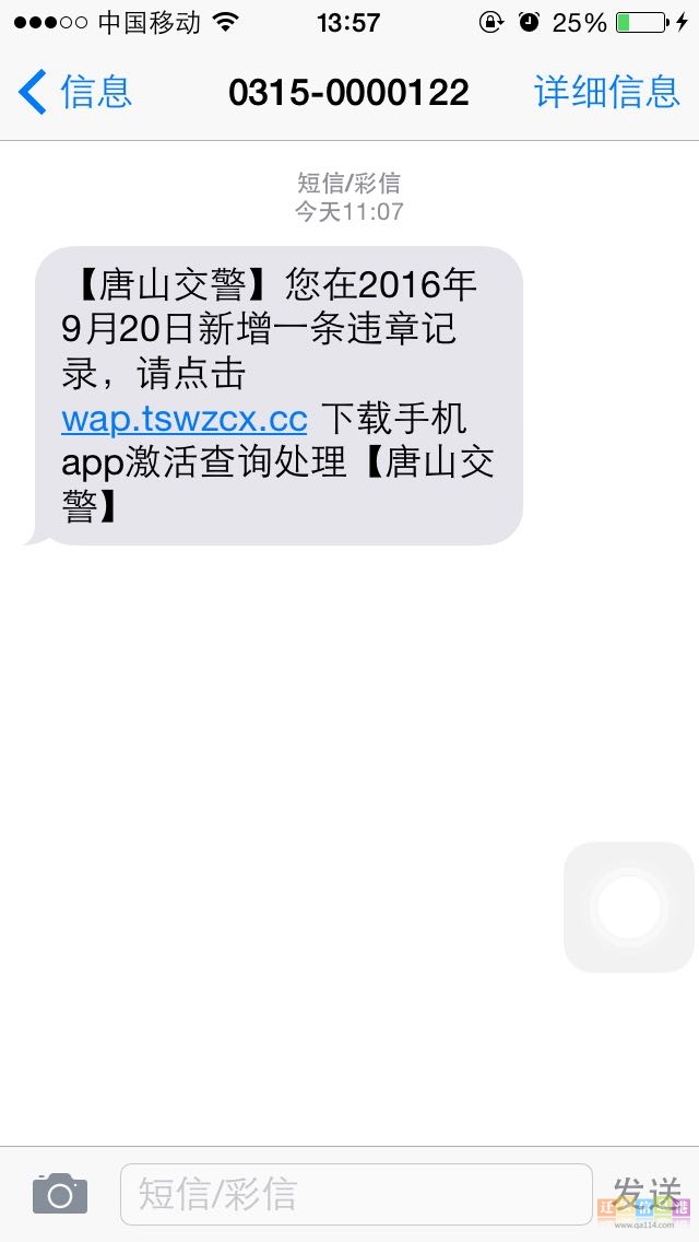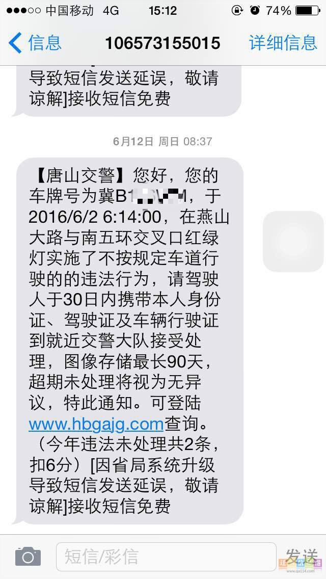迁安信息港消息:今天下午,市民蔡先生向信息港发来消息称,收到一条署名为“唐山交警”发来的违章短信,但这条短信与以往的违章短信有很大的不同。