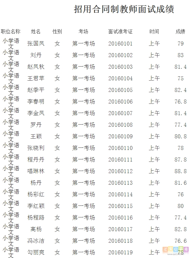 迁安信息港消息:今日,小编从迁安市人力资源和社会保障局获悉,2016年招用合同制教师面试工作已经结束,很多考生取得了可喜的成绩。