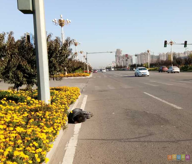 迁安信息港消息:今天一早,市民赵先生给迁安信息港打来热线称,在燕山大路南段迁安大剧院附近,有一名流浪汉躺在机动车道上,一动不动,不知道是不是受伤了。