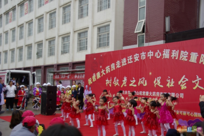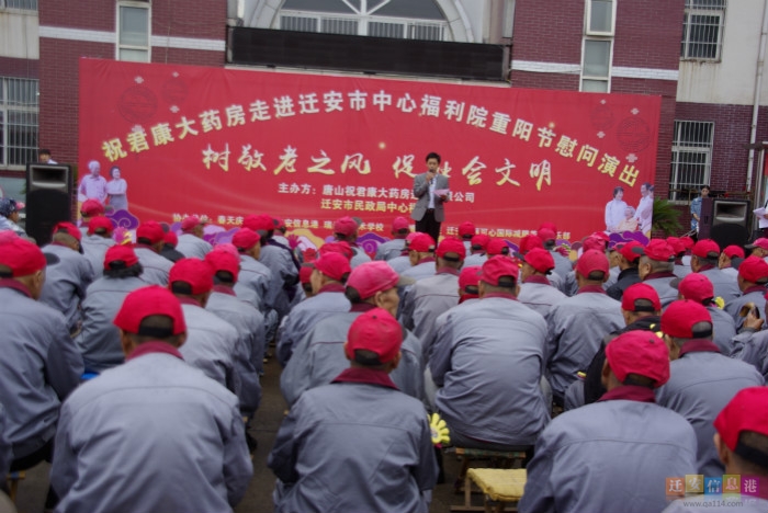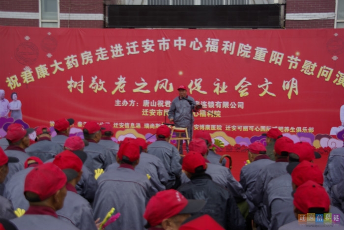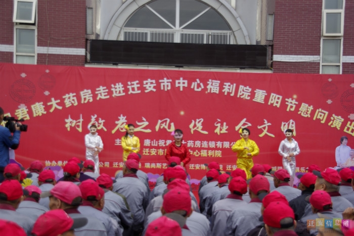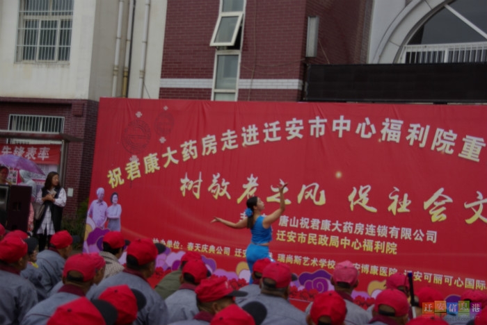 迁安信息港消息:今日上午,以“树敬老之风 促社会文明”为题的市中心福利院重阳节慰问演出圆满结束。此次活动由唐山市祝君康大药房连锁有限公司和迁安市民政局中心福利院联合主办,由博康医院、春天庆典、瑞尚斯艺术学校、迁安市可丽可心国际减肥养生俱乐部和迁安信息港共同协办。