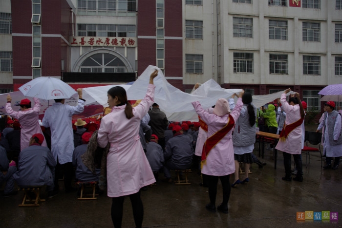 活动进行中的一个小插曲深深感动了小编。活动中雨势渐大,但丝毫没有影响演员和观众的热情,看到此情况,各单位的工作人员立即给场下福利院的观众和台上的小演员搭起了“人棚”,完全不顾自己还淋在雨中,现场围观群众无不竖起大拇指。