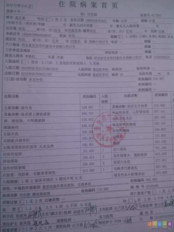 然而不幸却在一步步逼近,2015年2月1日郭立勇在滦县某运输公司上班时发生严重车祸,原本还算平静的生活被打乱,公司垫付一些医药费以后不再垫付,李秋红为了给丈夫治疗,借遍了所有亲戚朋友,经过大家的帮助和医院的治疗,郭立勇比医生预言的植物人强多了,不仅有了意识,而且记忆力恢复了一部分。