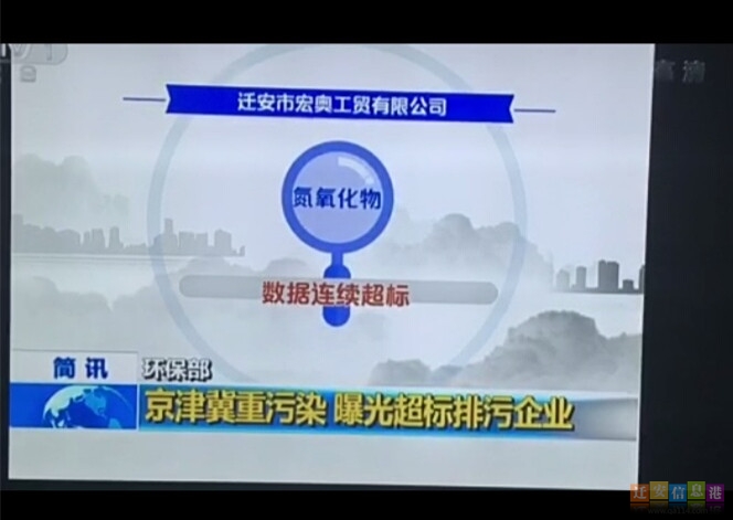 迁安信息港消息:今日中午,中央电视台《新闻30分》栏目曝光了三家超标排污企业,其中迁安宏奥工贸有限公司上榜。